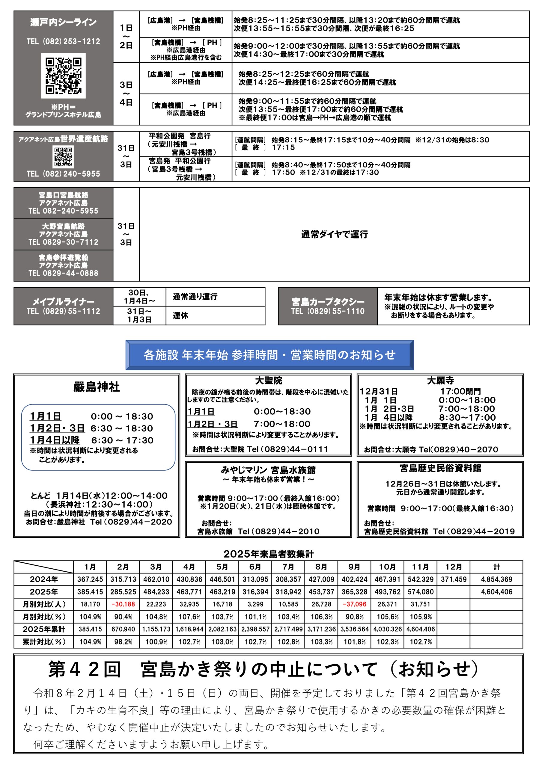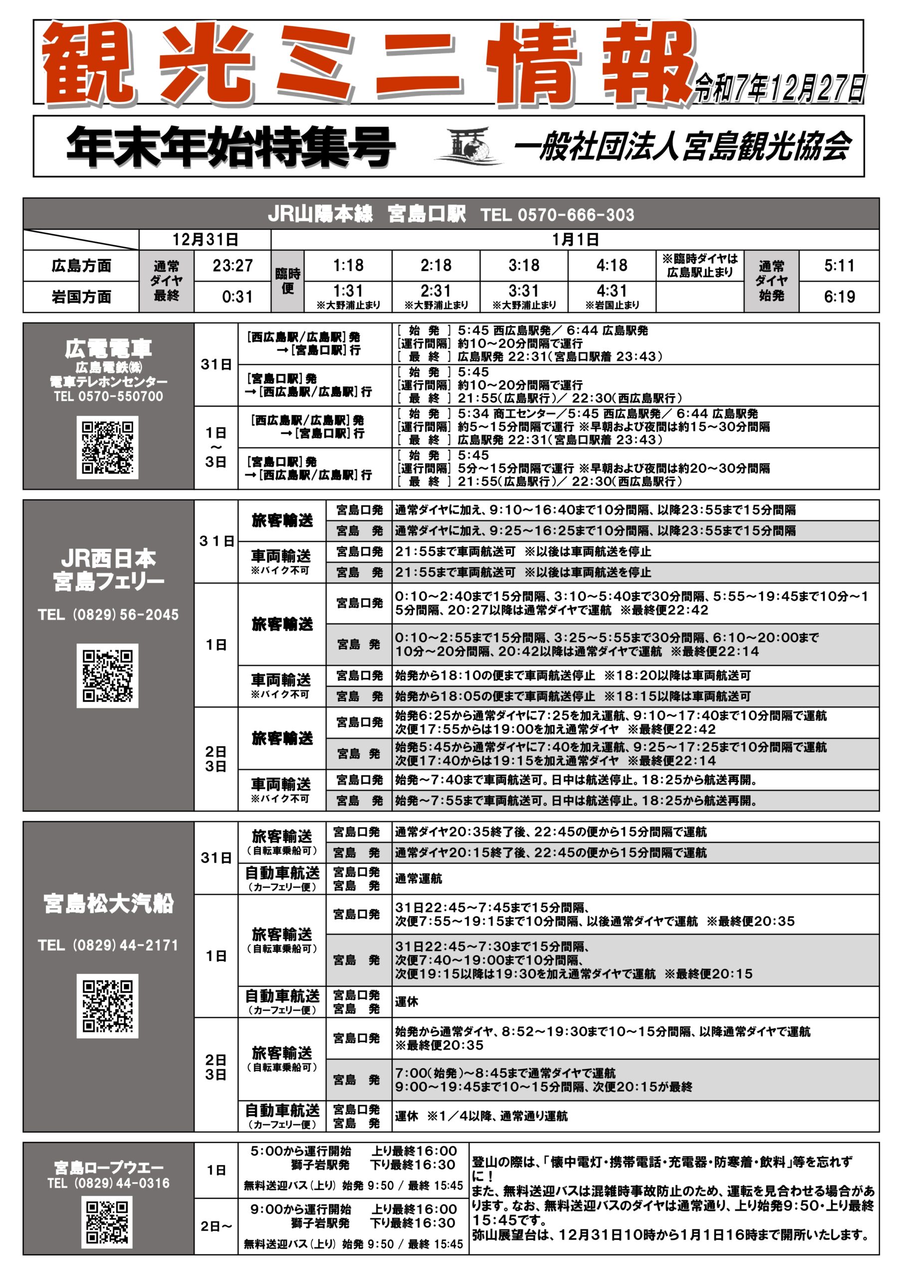 | 年末年始の宮島観光に便利な「観光ミニ情報」はコチラ! | 2025/12/27 |